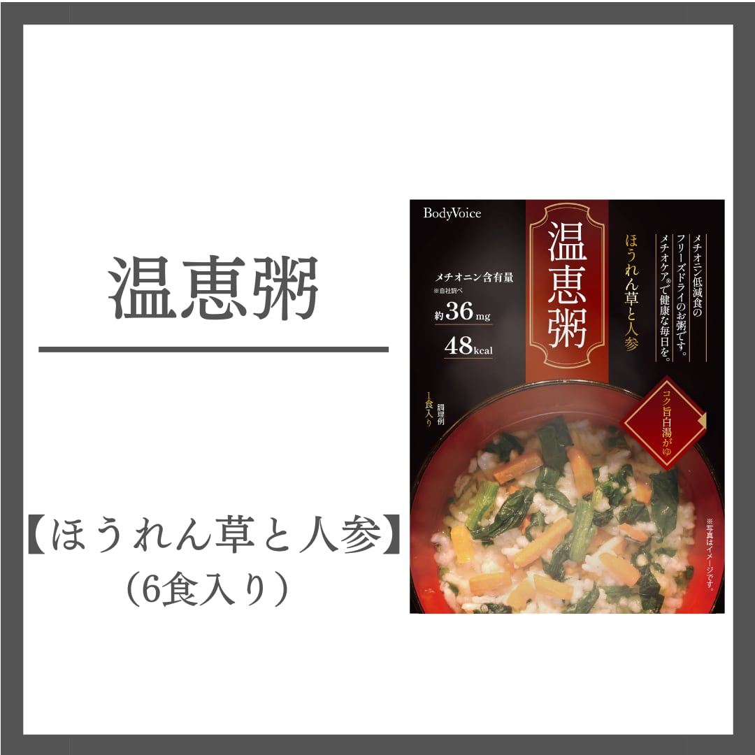 メチオニン低減食は、メチオニンというアミノ酸の摂取量を控えめにする食事法です。がんなど、特定の病気のケアに配慮し、体への負担を軽減することを目指しています。温恵粥は、そのメチオニン量に配慮しつつ、体にやさしい素材を使い、味わいや食べやすさにもこだわりました。お湯を注ぐだけで手軽に準備ができ、毎日の栄養サポートに役立ちます。